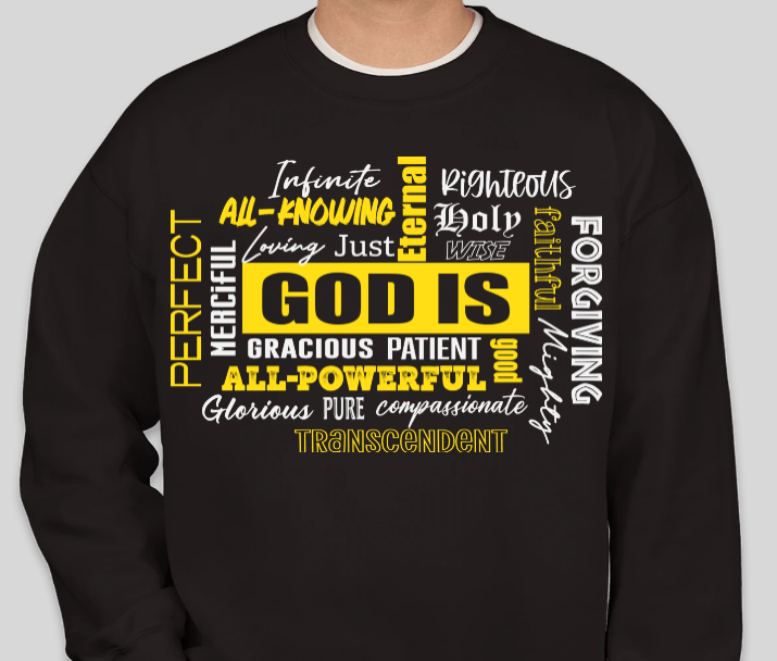 Embrace your faith with our Sweatshirt GOD Is. Our sweatshirt features the powerful message that God is everything, reminding you of the strength and love that comes from your beliefs. With this sweatshirt, you can proudly share your devotion and inspire others.